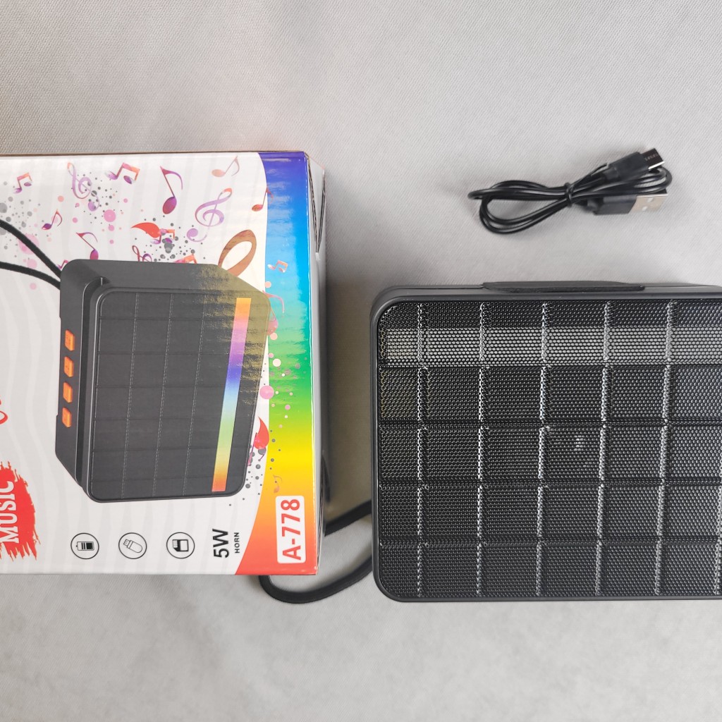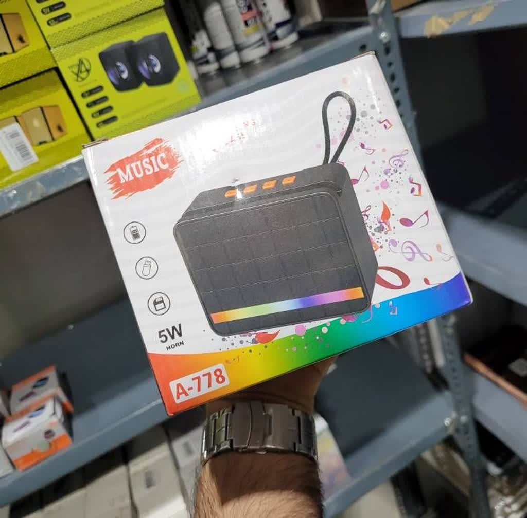 اسپیکر بیسیم A778 پلیری جالب با قابلیت رقص نور است ,این اسپیکر اندازه کوچکی دارد که باعث میشود حمل و نقل آسانی داشته باشد. این اسپیکر دارای درایو سایز 3 اینچی و قدرت خروجی 5 وات است. محدوده انتقال بیسیم اسپیکر تا 10 متر است و از بلوتوث نسخه 5.0 پشتیبانی میکند.همچنین دارای شیار کارت TF، پورت USB و رادیو FM است که به شما امکان پخش موسیقی از منابع مختلف را میدهد.