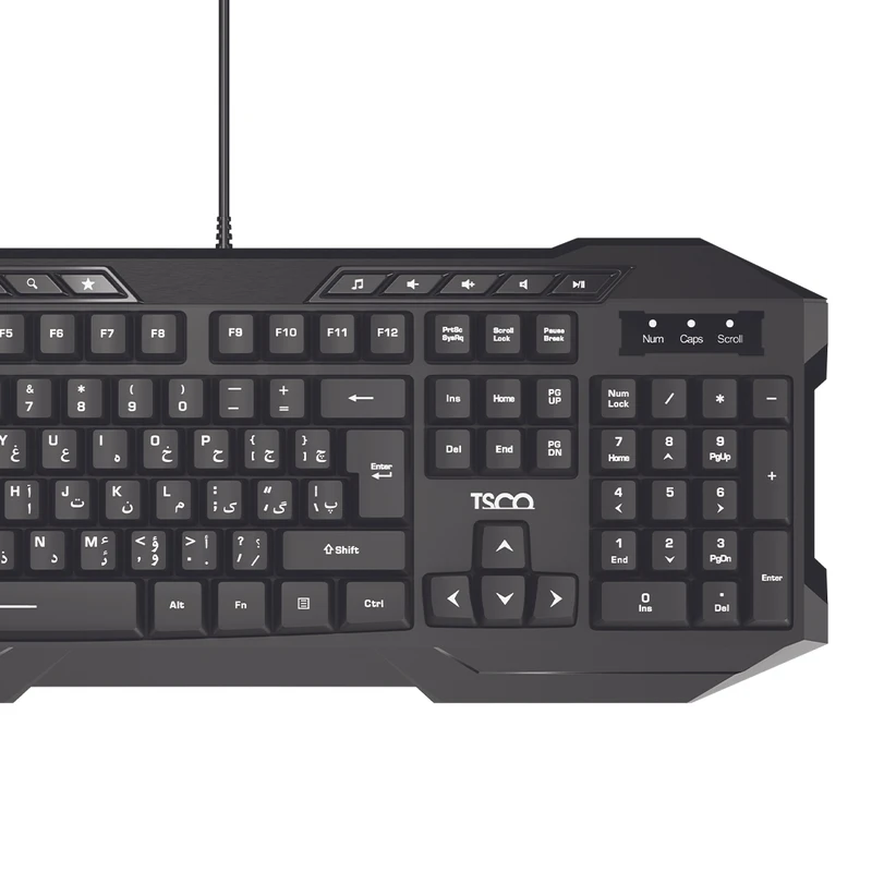 کیبورد اتصال باسیم در کیبورد TK 8042 با استفاده از رابط USB صورت میگیرد، که نهتنها پایدار و بدون تاخیر است، بلکه نیازی به نصب نرمافزار یا تنظیمات خاص ندارد. اتصال از طریق USB باعث میشود این کیبورد روی تمام سیستمعاملهای رایج، از جمله ویندوز و لینوکس، بلافاصله قابل استفاده باشد. این مدل از سوییچهای ممبران استفاده میکند که بهخاطر نرمی ضربه، صدای کم و عمر نسبتاً بالا، انتخابی متداول در کیبوردهای اداری و خانگی است. یکی از شاخصههای مهم در ساختار داخلی این کیبورد، عمر بالای سوییچهاست. بر اساس مشخصات فنی، کلیدهای TK 8042 تا ۱۰ میلیون بار فشرده شدن را بدون افت عملکرد تحمل میکنند. 8042 دارای ۱۰ کلید مالتیمدیا مستقل و مجزا روی بدنه است. این طراحی باعث میشود کنترل صدا، پخش موسیقی، دسترسی به مرورگر، ایمیل یا ماشینحساب، بدون ترکیب کلیدها و فقط با یک لمس انجام شود. طول کابل در این مدل ۱.۸ متر است؛ عددی استاندارد که آزادی لازم برای چینش میز کار را فراهم میکند. کیبورد با ابعاد 456×176×27